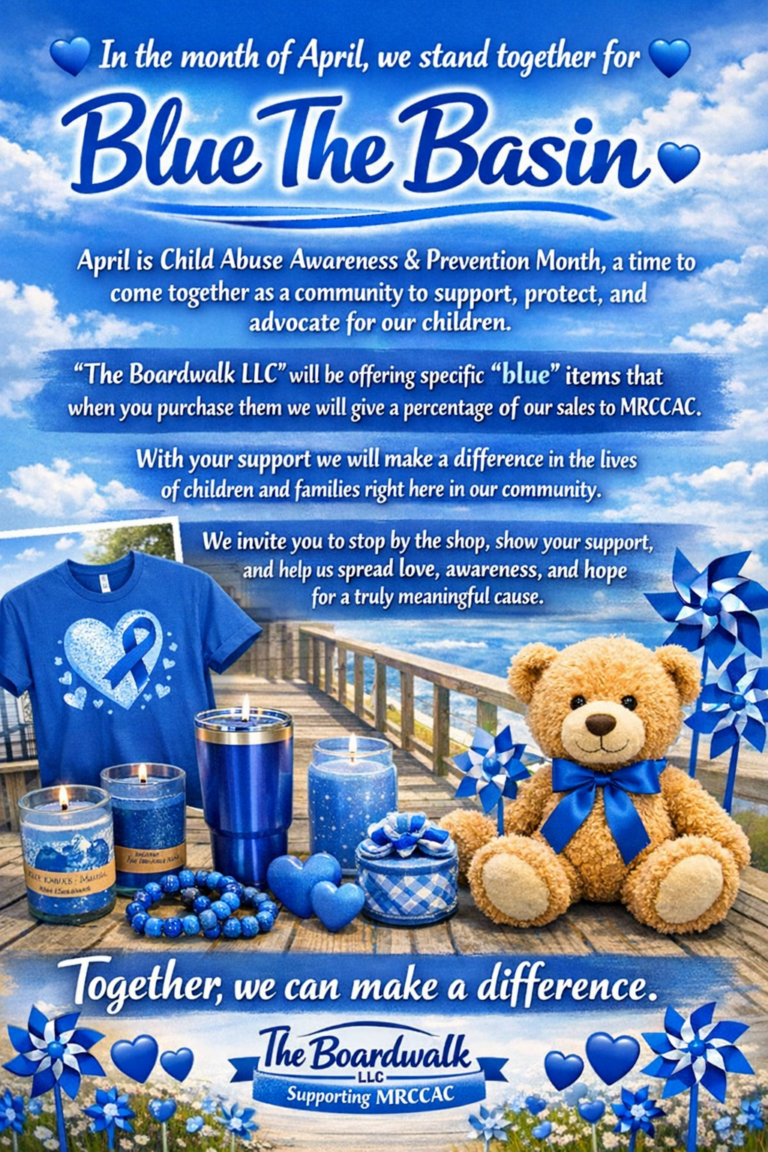 Also, this April is Child Abuse & Prevention month and here at "The Boardwalk LLC" we will be donating a percentage of our "Blue Item" sales to MRCCAC.